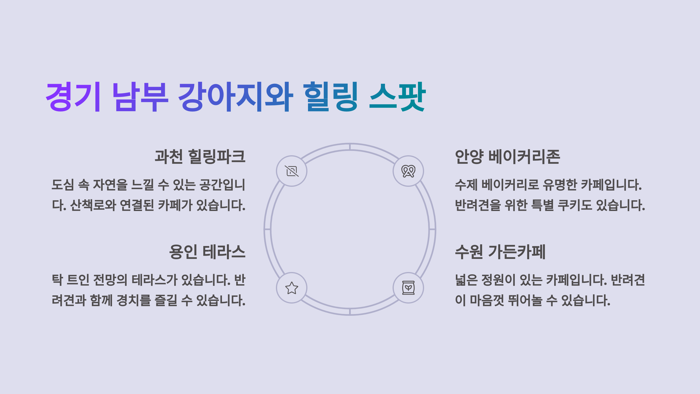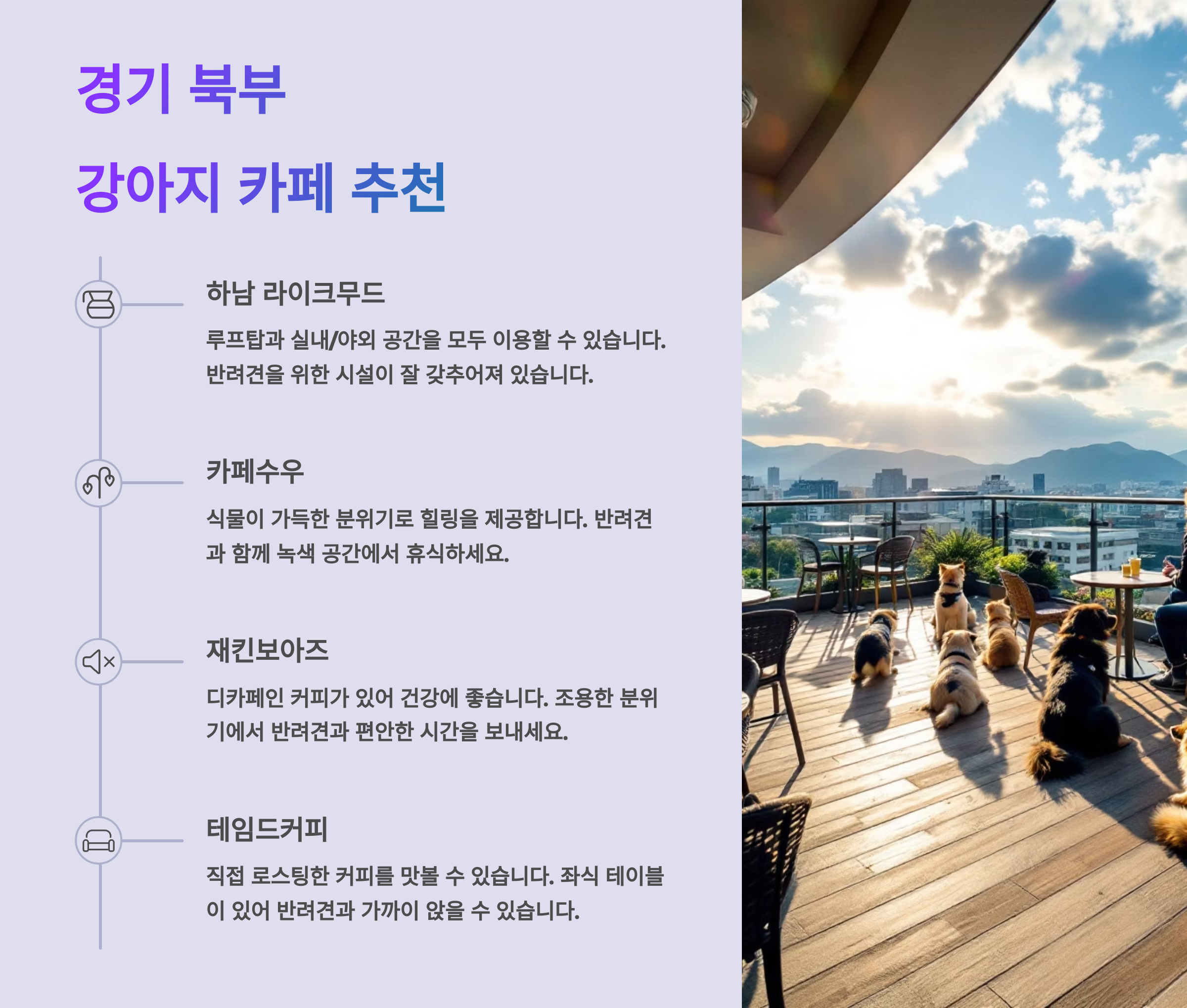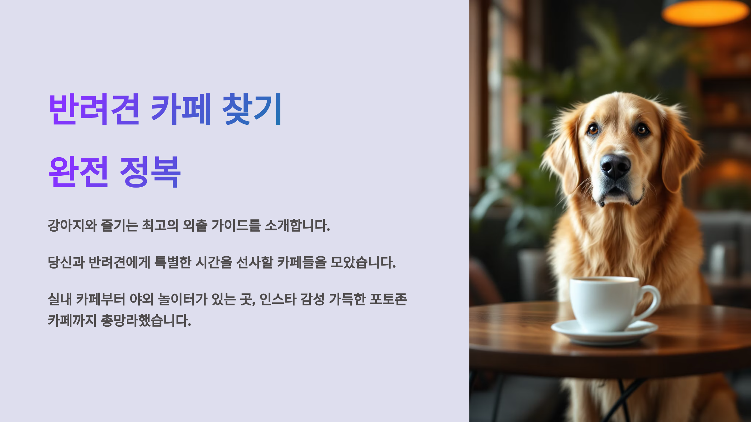 💡 반려견과의 외출이 단순한 산책을 넘어, 삶의 질을 높이는 특별한 경험이 될 수 있어요. 이제 본격적으로 지역별 반려견 동반 카페를 소개해볼게요!