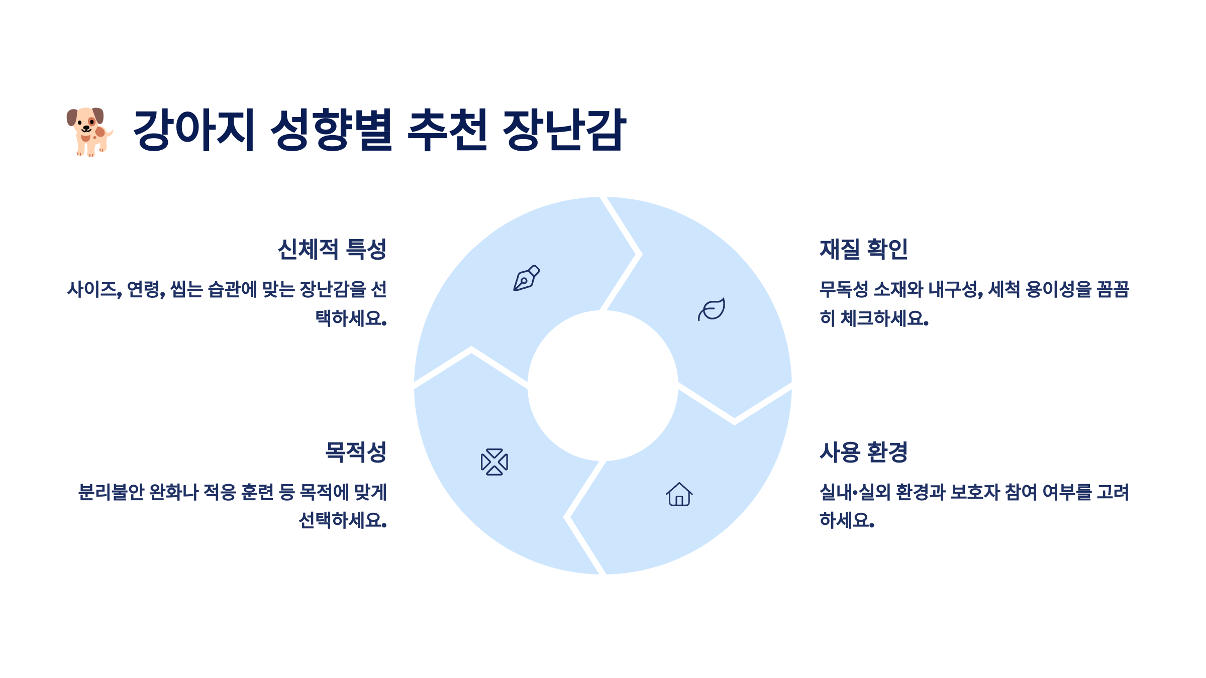 강아지 장난감을 고를 때는 단순히 예쁜 것보다 안전성과 실용성을 최우선으로 생각해야 해요! 🐾💡
