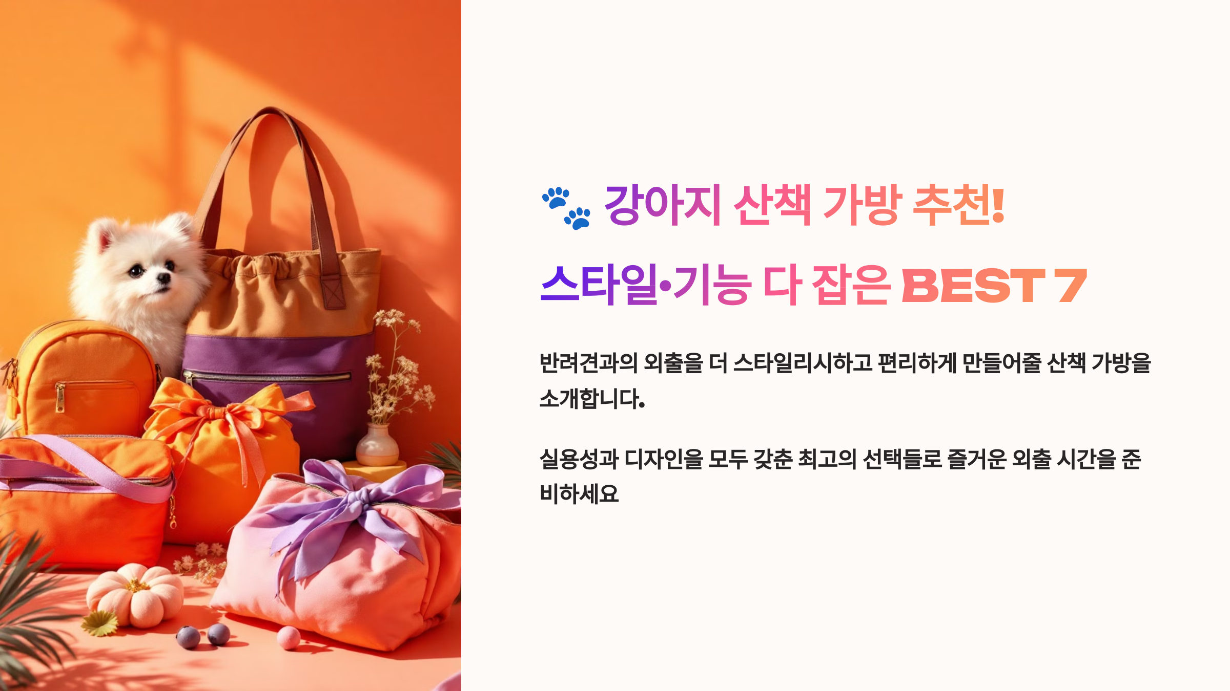 📦 이 글에서는 실속 있게 쓸 수 있는 다용도 가방부터, 산책룩 완성해주는 트렌디한 아이템까지 강아지 산책 가방 BEST 7을 소개할게요. 어떤 제품이 진짜 ‘찐템’인지, 하나하나 꼼꼼히 살펴보자구요!