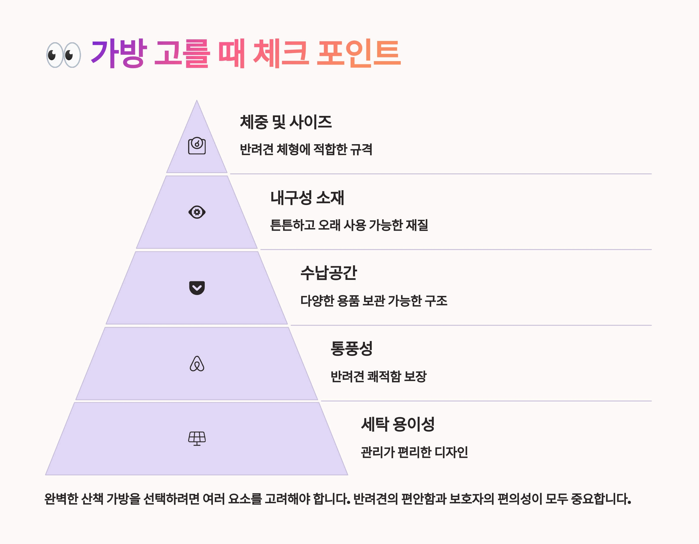 📍 이 기준만 가지고 생각해도 꽤 괜찮은 선택을 할 수 있어요. 그리고 산책 가방은 한 번 사두면 오래 쓰는 제품이니, 퀄리티 좋은 브랜드 제품을 고르는 것도 중요하답니다.