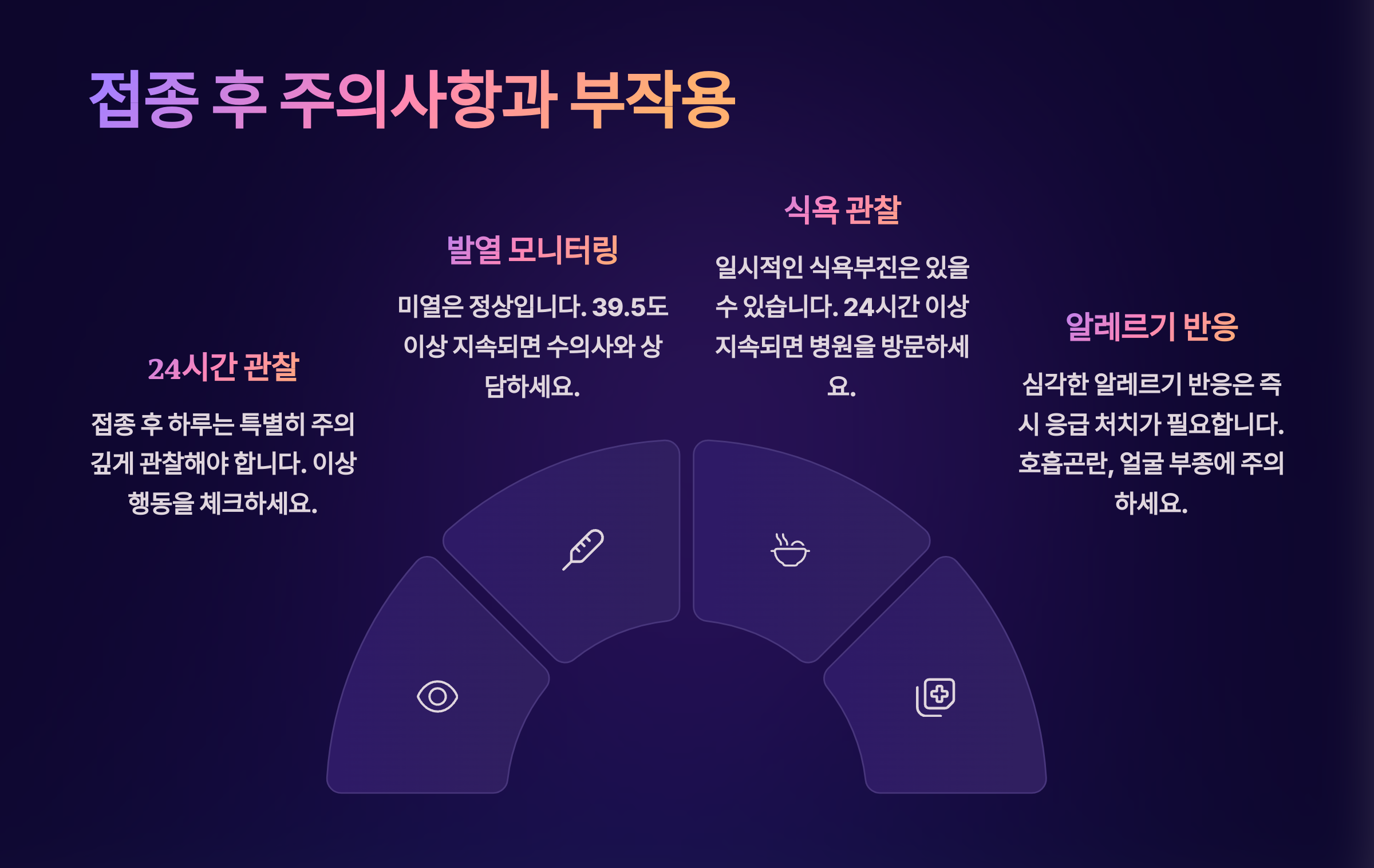 - 🛌 접종 후엔 24시간 내 상태 관찰, 무리한 활동 금지