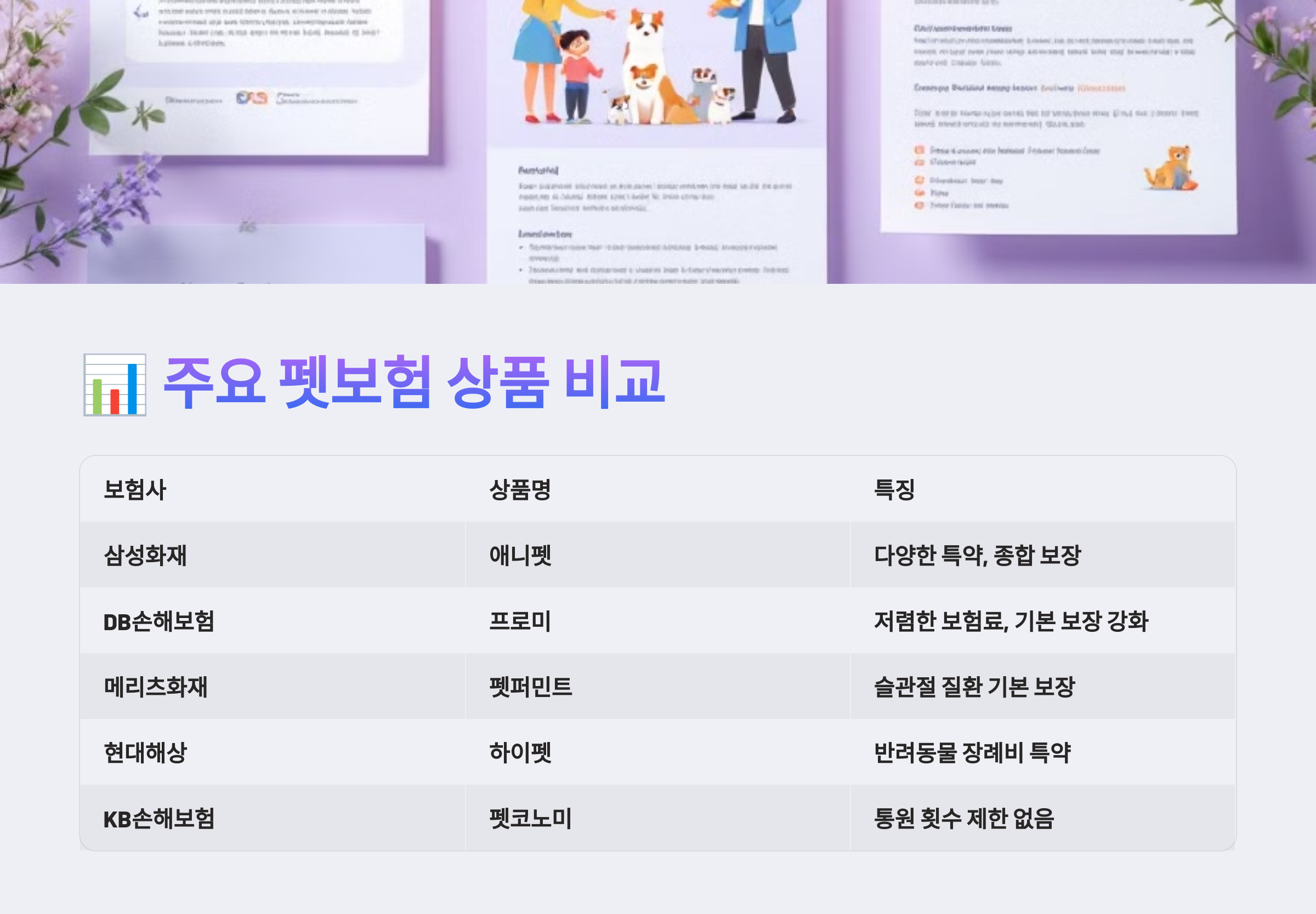 다음은 세 번째 섹션 📊 주요 펫보험 상품 비교예요! 국내에서 가입 가능한 보험사별 상품을 표로 정리해서 비교해드릴게요! 📝🐾