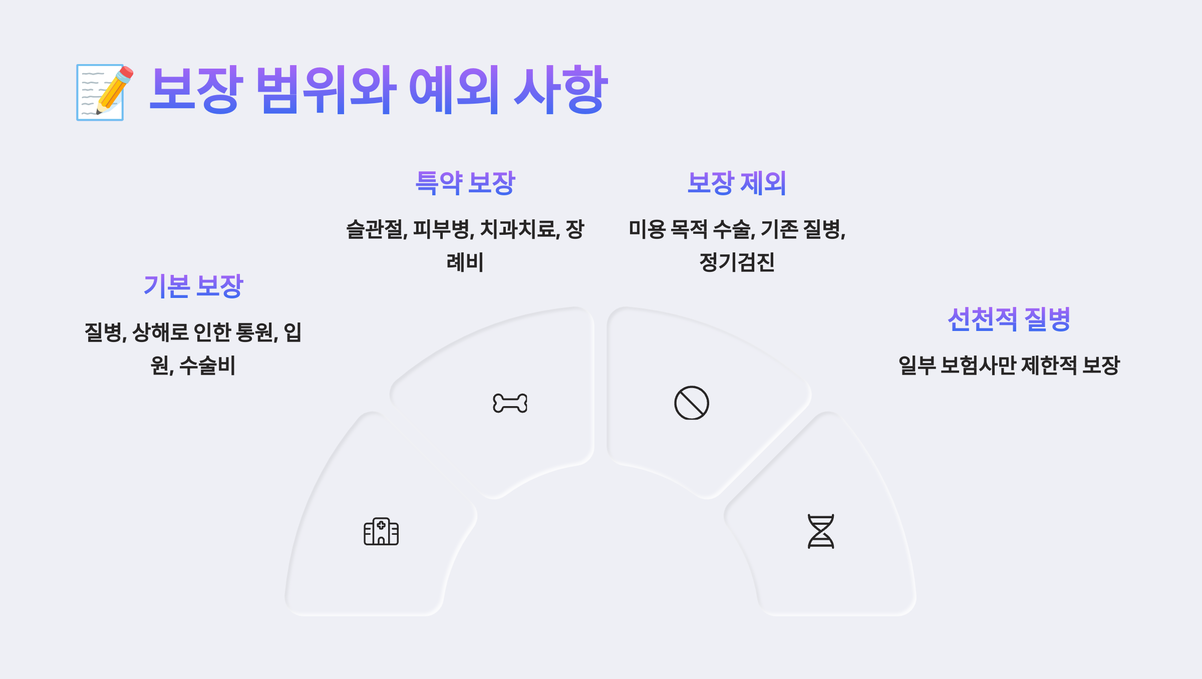 다음은 네 번째 섹션 📝 보장 범위와 예외 사항이에요! 펫보험이라고 다 되는 건 아니에요. 꼭 알아야 할 보장 제외 항목도 함께 알아봐요! 🩺📑