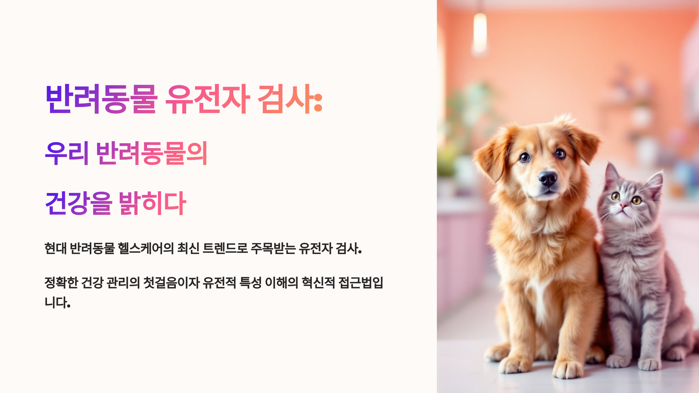 🐶 “우리 강아지는 왜 이렇게 활발할까?” “고양이가 갑자기 아픈 건 유전적인 걸까?” 이런 생각 해본 적 있지 않나요? 요즘은 사람뿐만 아니라 반려동물도 유전자 검사를 통해 건강, 성격, 품종까지 알 수 있어요!