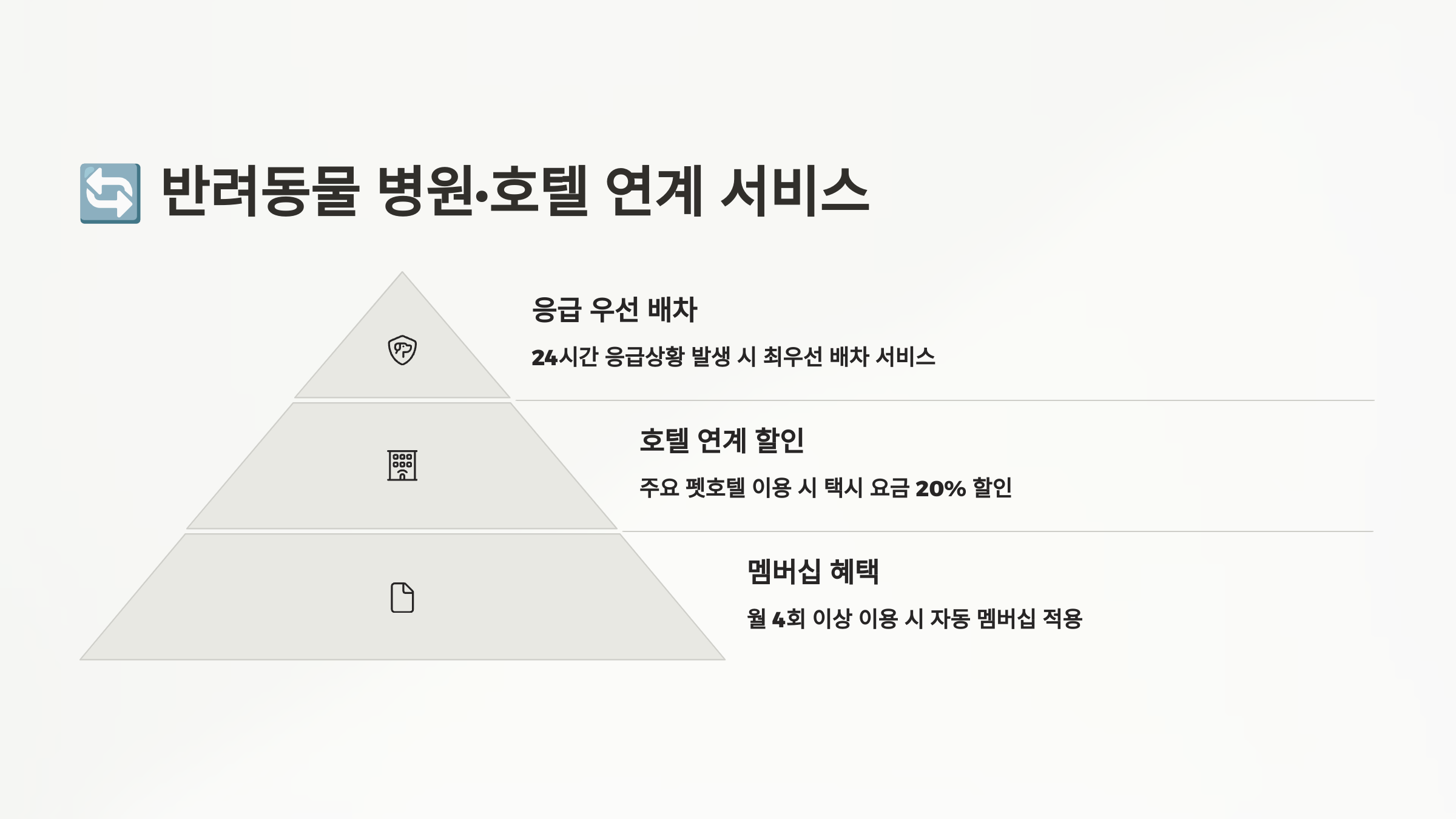 펫택시의 가장 유용한 기능 중 하나는 병원·호텔 연계 이동 서비스예요. 단순히 집↔장소 이동만 하는 게 아니라, 병원 접수부터 호텔 체크인까지 기사님이 대신 도와주는 시스템도 점점 많아지고 있어요.