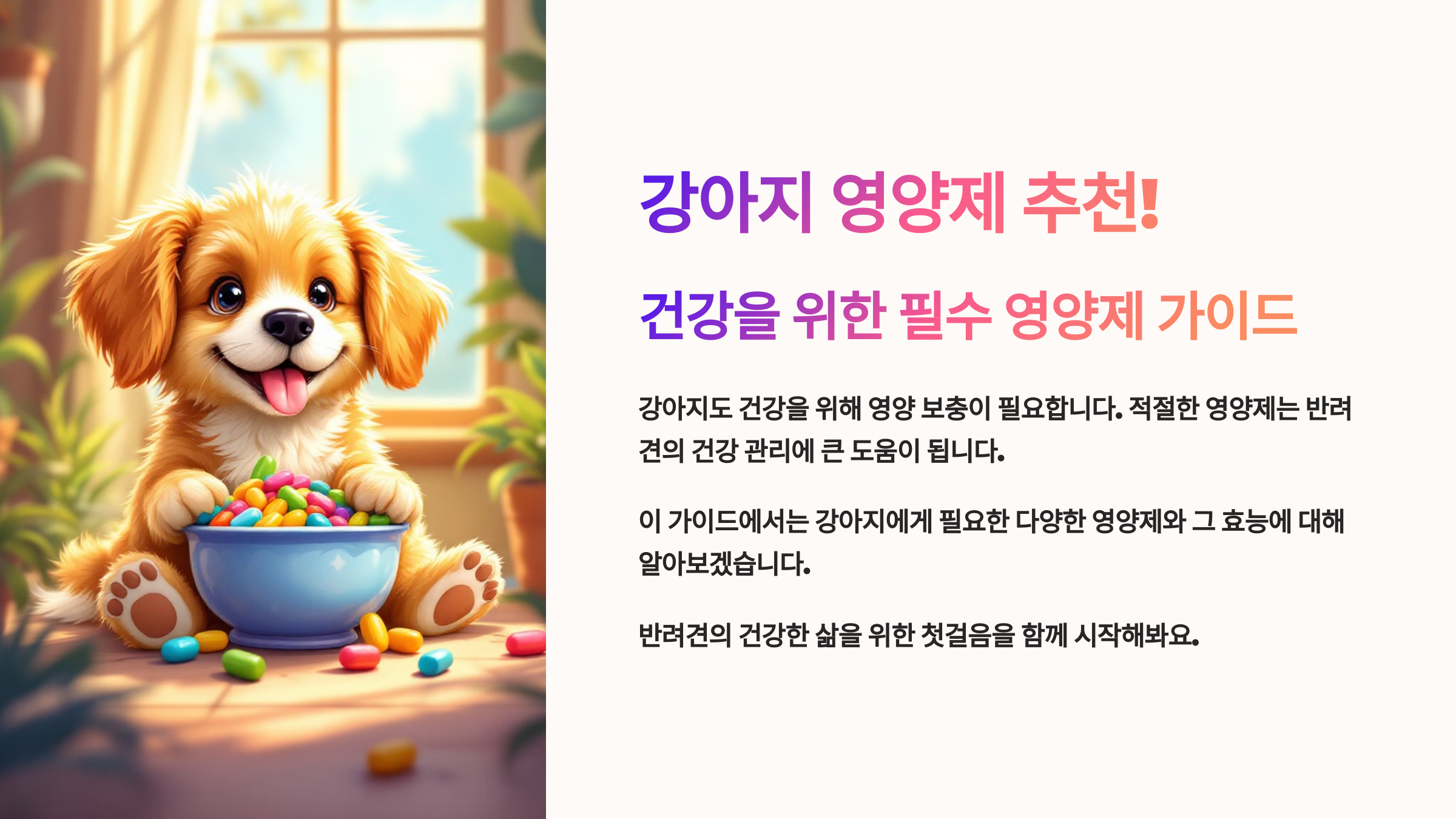 강아지에게 맞는 영양제를 올바르게 급여하여 건강하고 행복한 생활을 만들어 주세요! 🐾💊