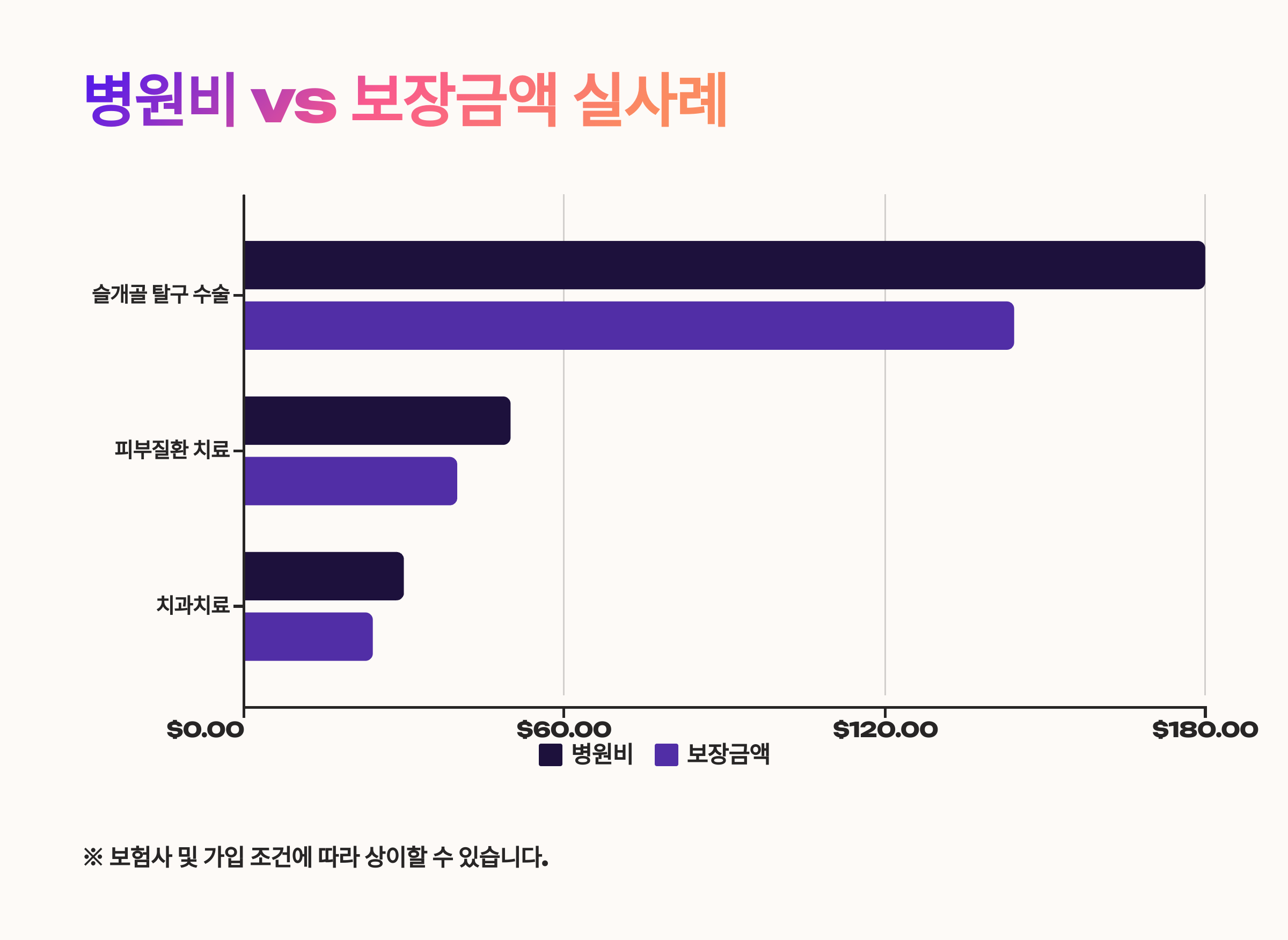 | 보장 범위 | 진료비, 약값, 수술, 입원, 검사비 등 |