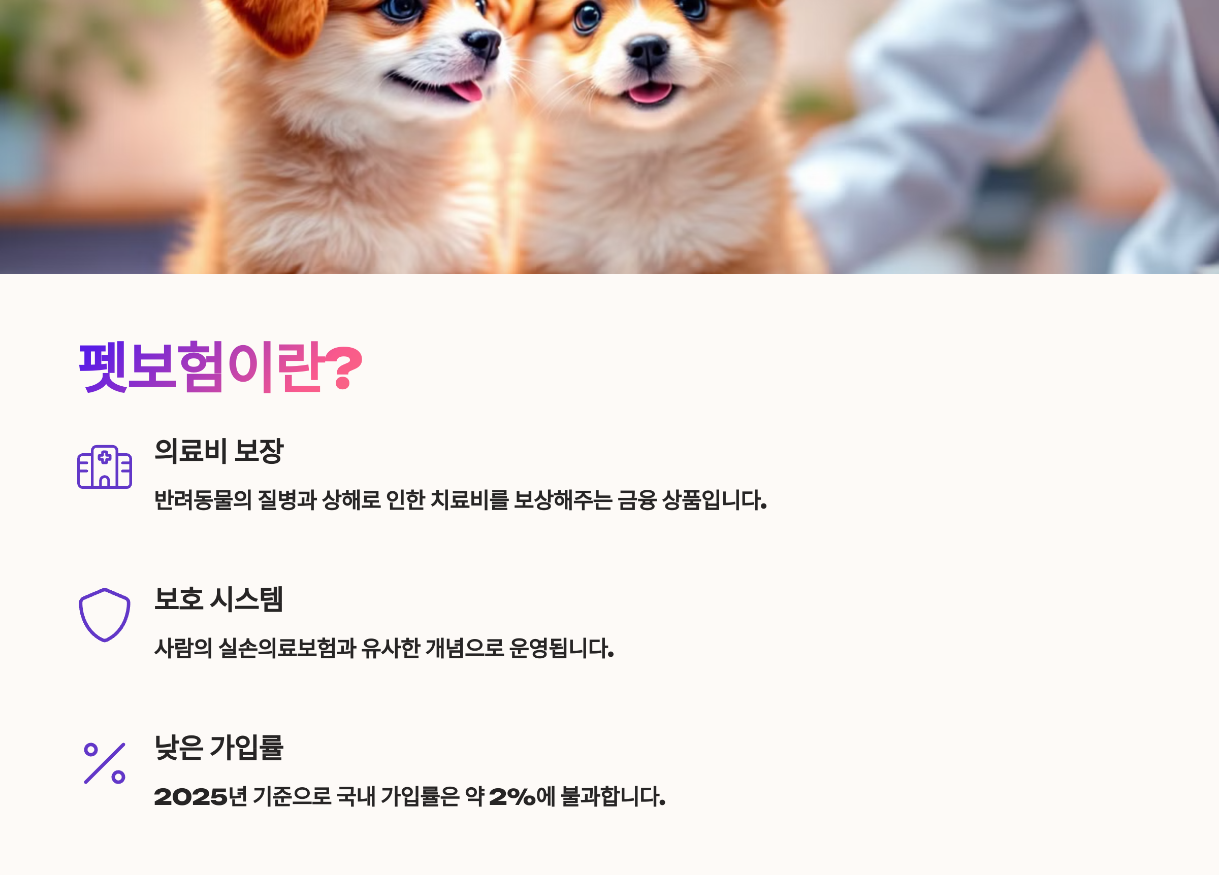 그래서 많은 보호자들이 펫보험 가입을 고려하죠. 하지만 종류가 너무 많고, 보장 항목도 다 달라서 비교하기가 쉽지 않아요. 오늘은 2025년 기준 최신 펫보험 조건과 함께 보장 내용, 금액, 자기부담금까지 제대로 비교해볼게요!
