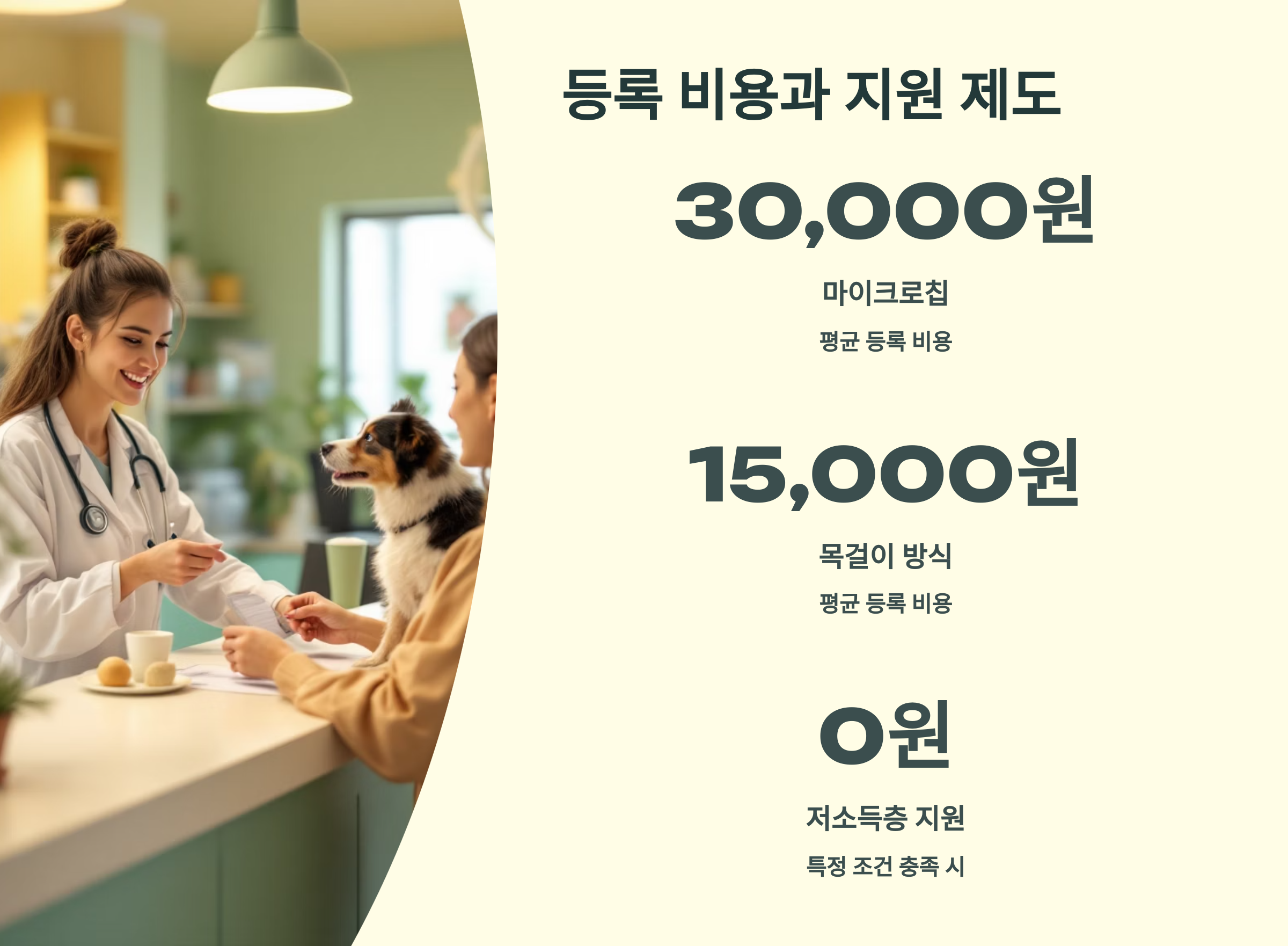 이 비용은 동물병원마다 차이가 있으며, 시술비 포함 여부도 다르기 때문에 사전에 꼭 확인 후 방문하는 것이 좋아요. 일부 병원은 등록비 외에 진료비가 추가될 수도 있어요 🏥