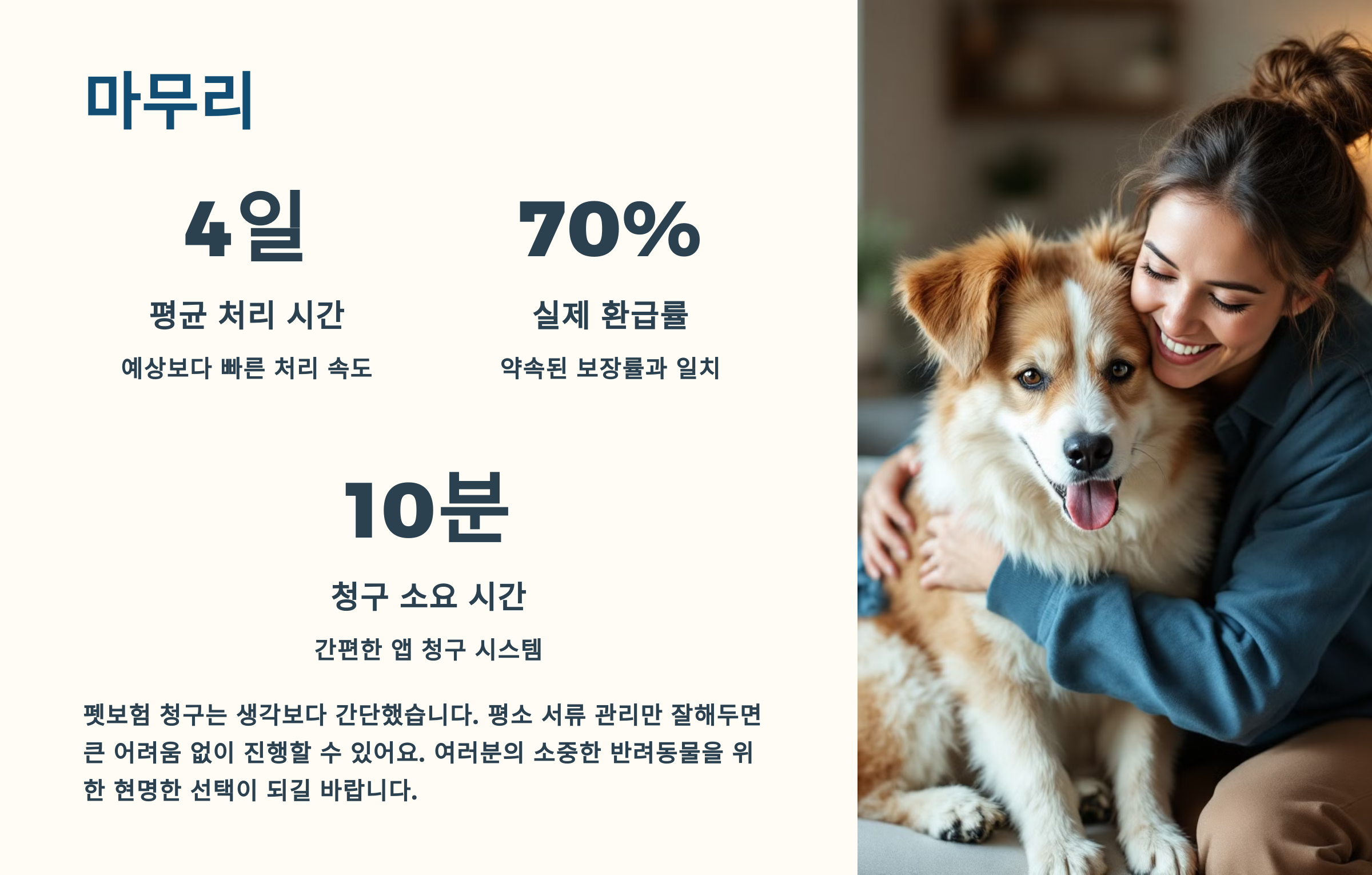 특히 앱 청구는 간편하고 처리 속도도 빨라서 바쁜 일상 속에서도 충분히 사용할 수 있었어요. 병원에 갈 때 필요한 서류를 물어보는 것도 전혀 어색하지 않았고, 요즘 병원도 펫보험 청구에 익숙해서 더 수월했어요.