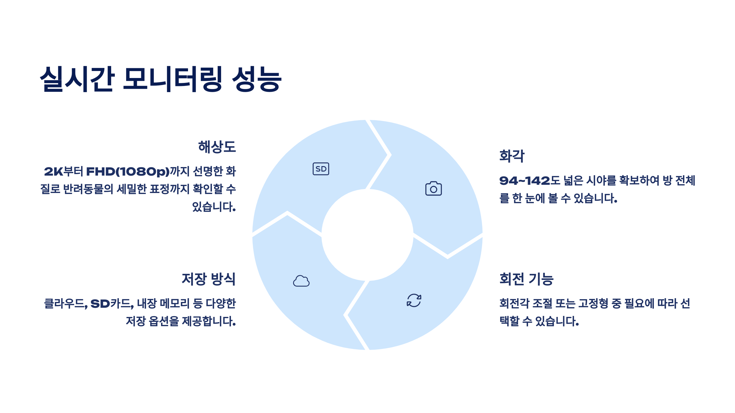 실시간 모니터링 성능은 반려동물의 안심을 위한 가장 핵심적인 기능이에요. 이제는 음성으로 소통까지 할 수 있는 시대니까요.🐕