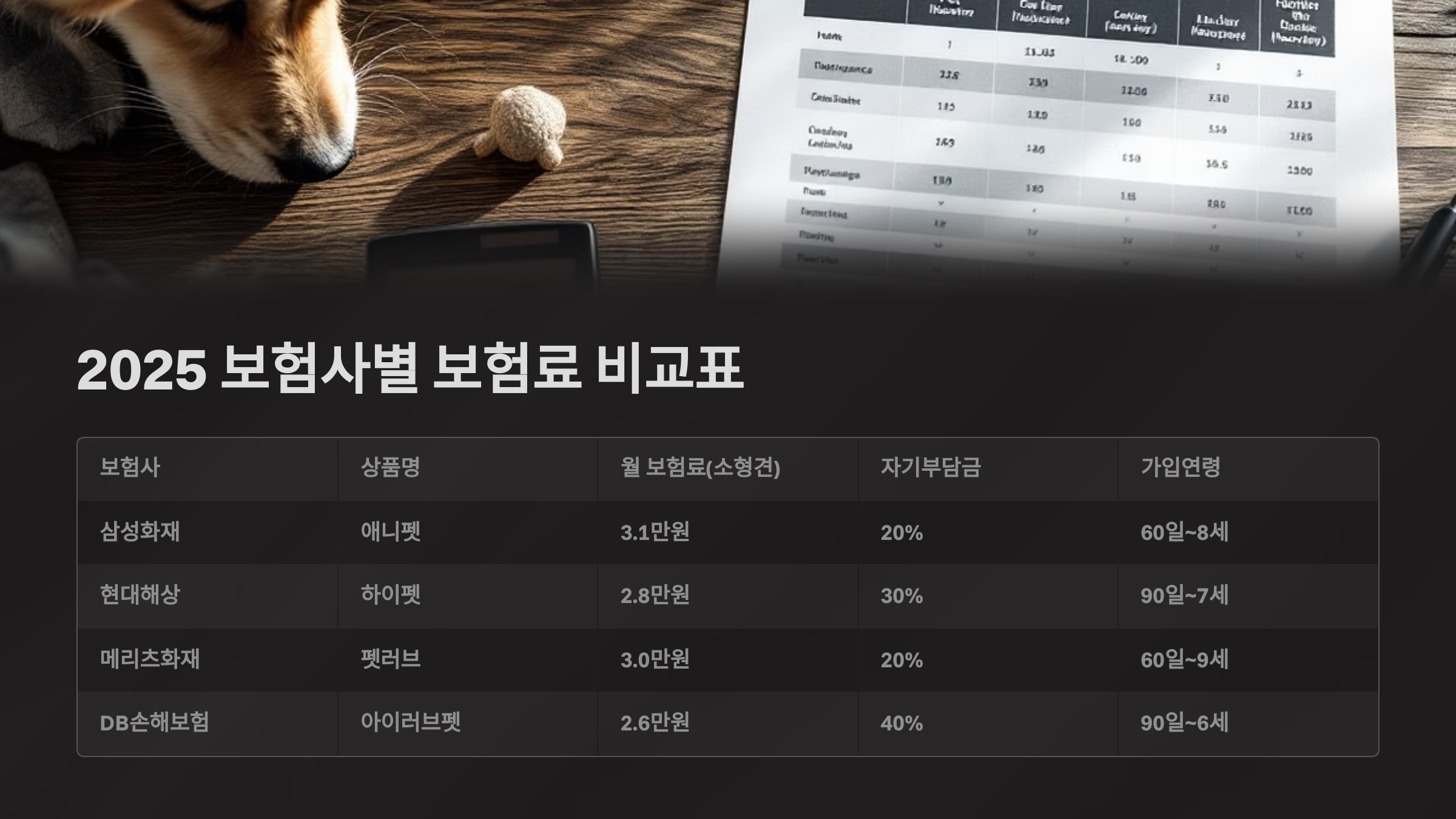 🐾 2025 반려동물 보험료 비교표 총정리 – 강아지·고양이별 보험료는 얼마?