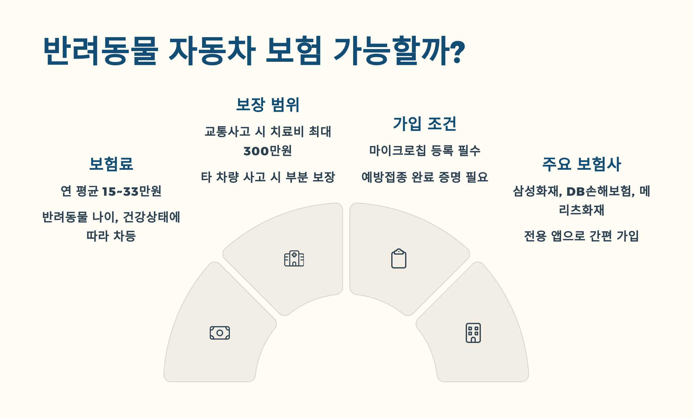 2025년 현재, 자동차 보험에는 반려동물 보장이 포함되지 않는 경우가 대부분이에요. 하지만 반려동물 동승 사고가 증가하면서 펫 추가 특약 상품을 제공하는 보험사가 점점 늘어나고 있어요! 💡