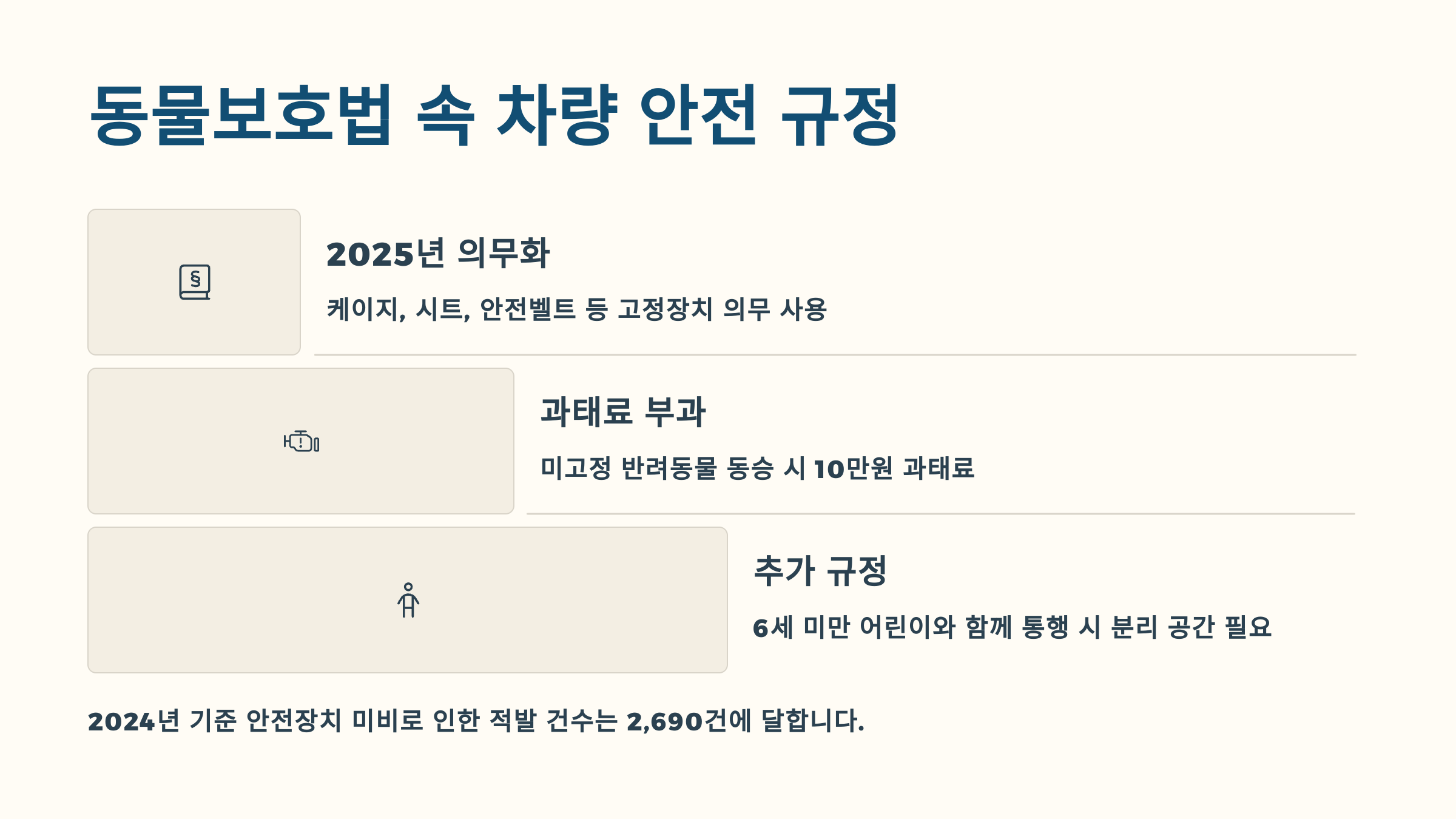 차량에 반려동물을 태우는 건 이제 단순한 선택이 아니라 의무와 책임이 따르는 일이에요. 2025년을 기준으로는 법과 제도, 보험까지 펫 동승 문화가 확실히 자리잡는 변화의 시기예요. 🐕🦺📘