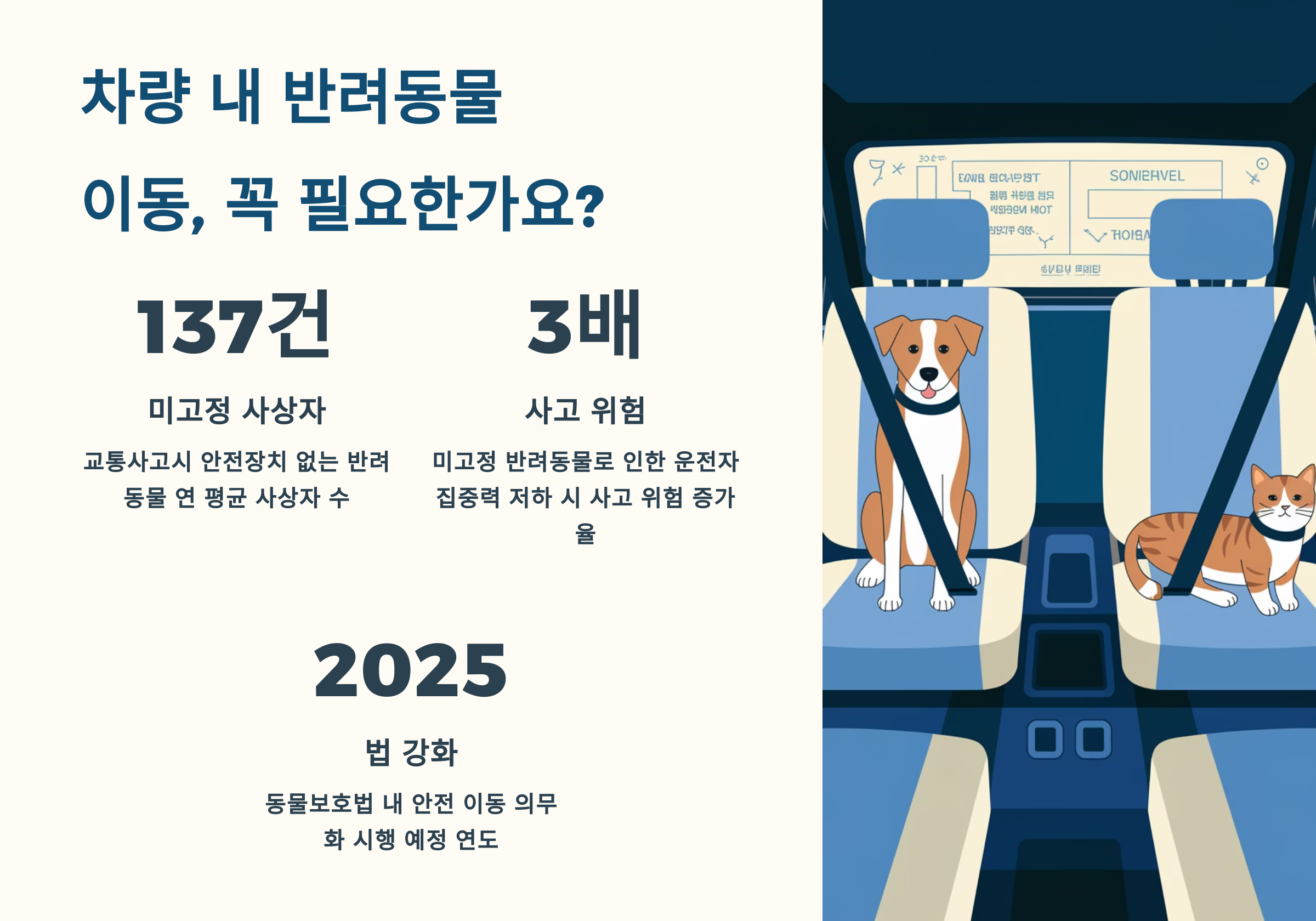 차량에 반려동물을 태우는 건 이제 단순한 선택이 아니라 의무와 책임이 따르는 일이에요. 2025년을 기준으로는 법과 제도, 보험까지 펫 동승 문화가 확실히 자리잡는 변화의 시기예요. 🐕🦺📘