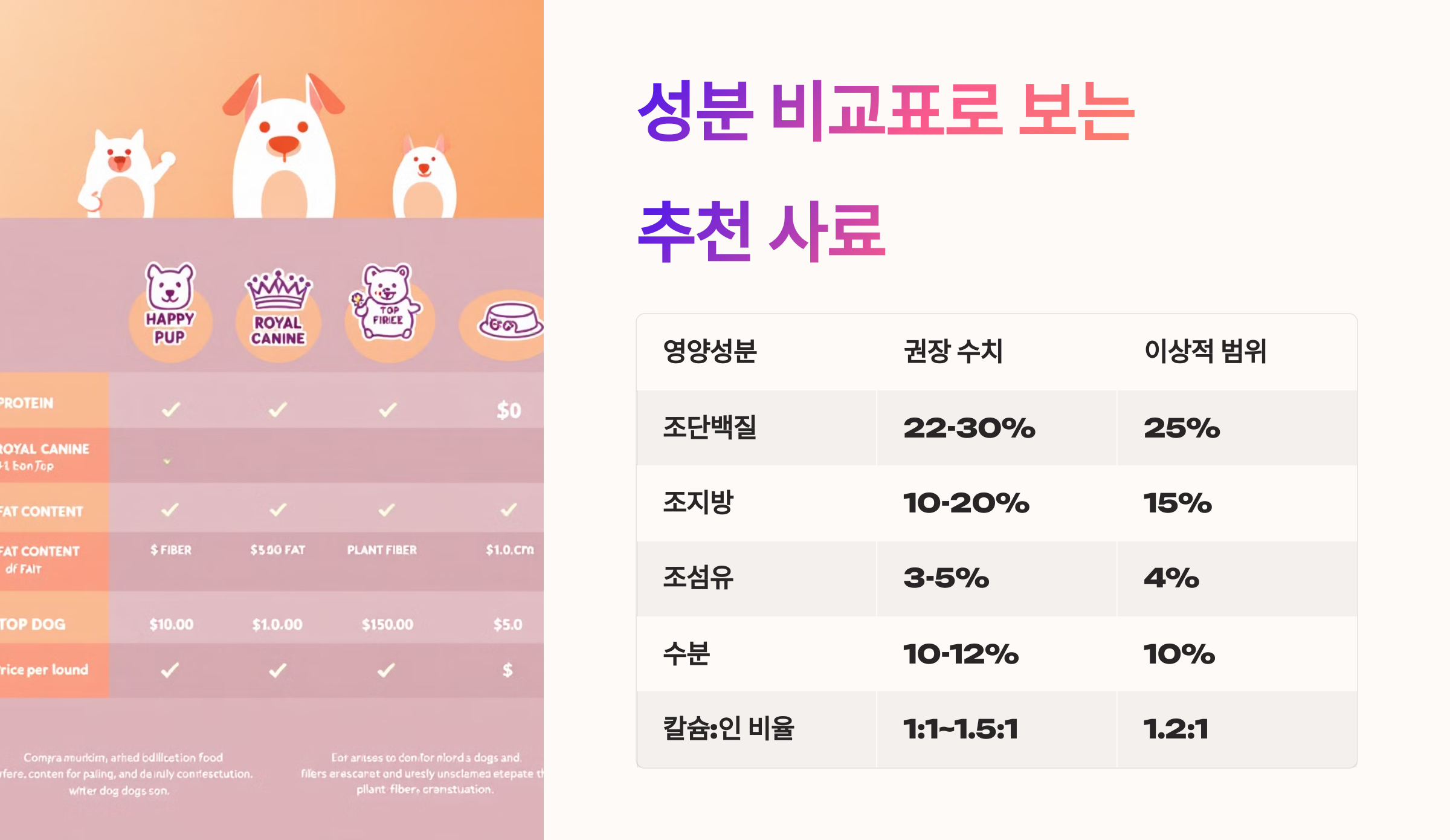 🧪 성분 비교표로 보는 추천 사료