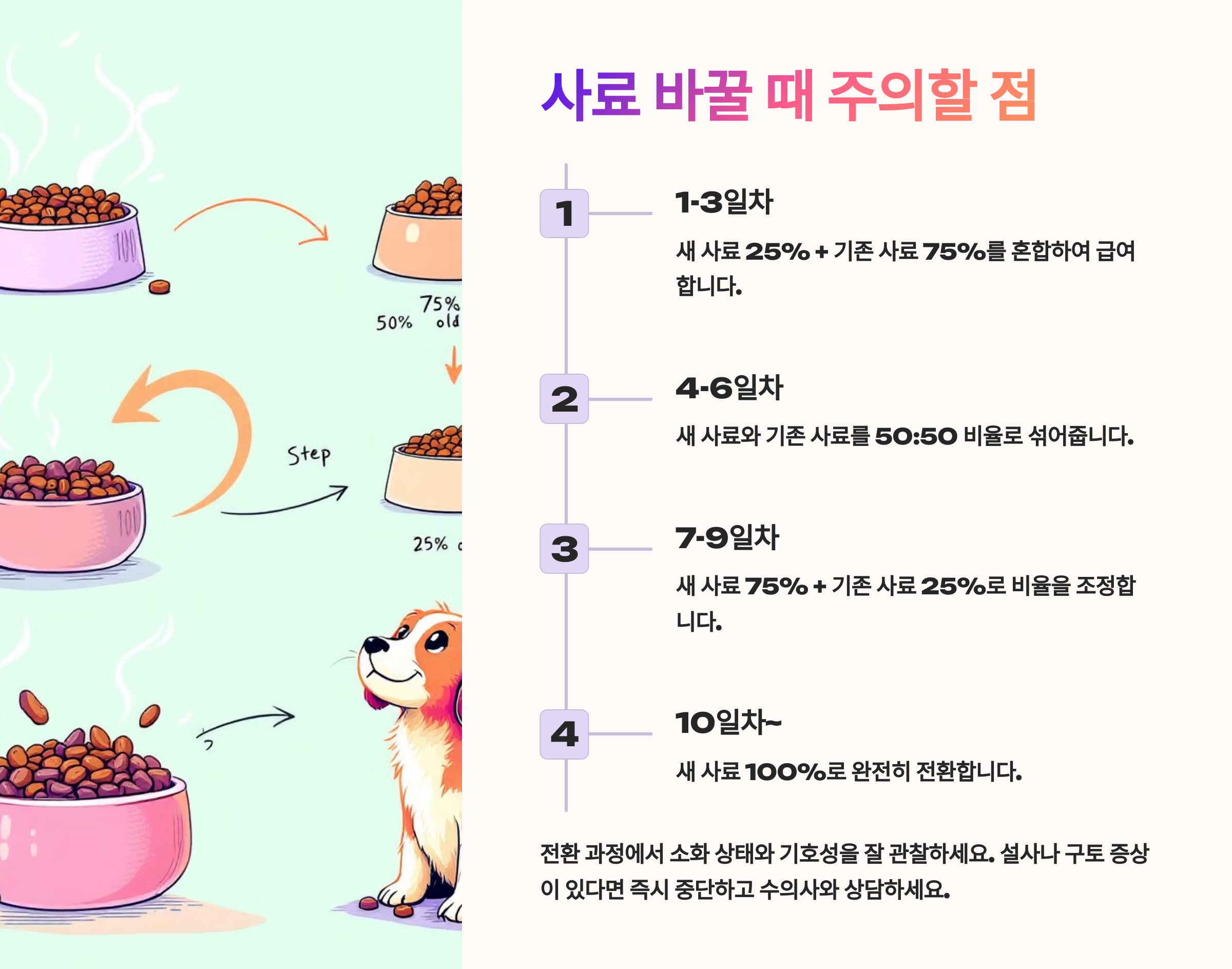 ⏱ 안전한 사료 전환 방법 (7일 법칙)
