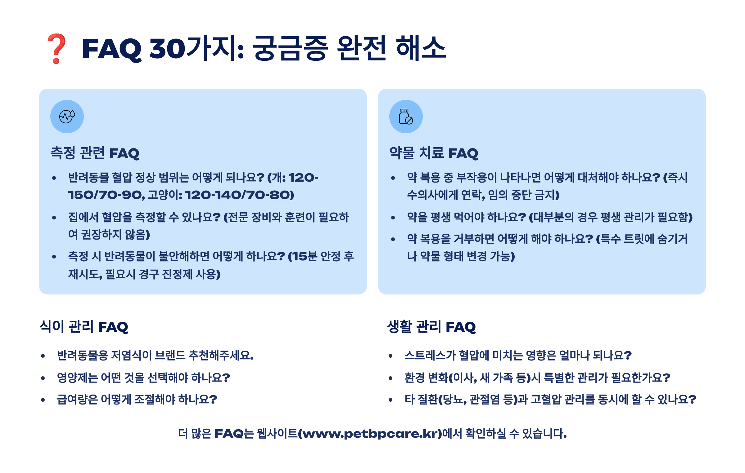 사랑하는 반려동물과 더 오래, 더 건강하게 함께하기 위해서는 혈압 관리가 필수예요. 오늘부터라도 정기적인 혈압 체크를 시작하고, 건강한 생활 습관을 만들어가세요. 작은 관심과 노력이 반려동물의 건강한 노후를 보장하는 가장 확실한 투자랍니다! 🐾💕