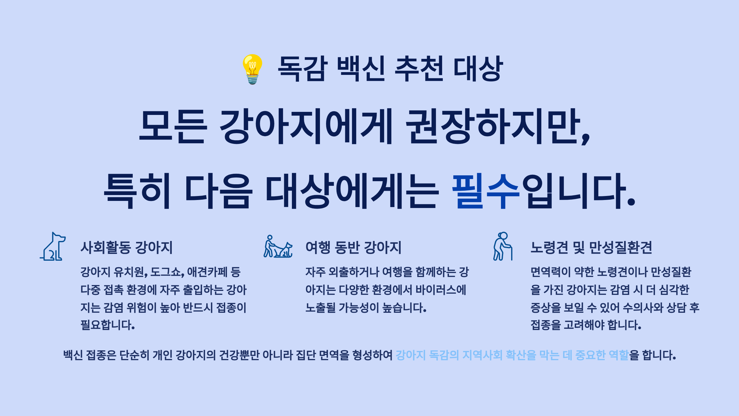 예방접종을 하면 완전히 감염을 막을 수는 없지만, 감염되더라도 증상이 훨씬 가볍게 지나가요. 마치 사람이 독감 예방주사를 맞는 것과 같은 원리예요. 특히 다견 가정이나 애견 관련 시설을 자주 이용하는 경우라면 반드시 접종을 고려해보세요!