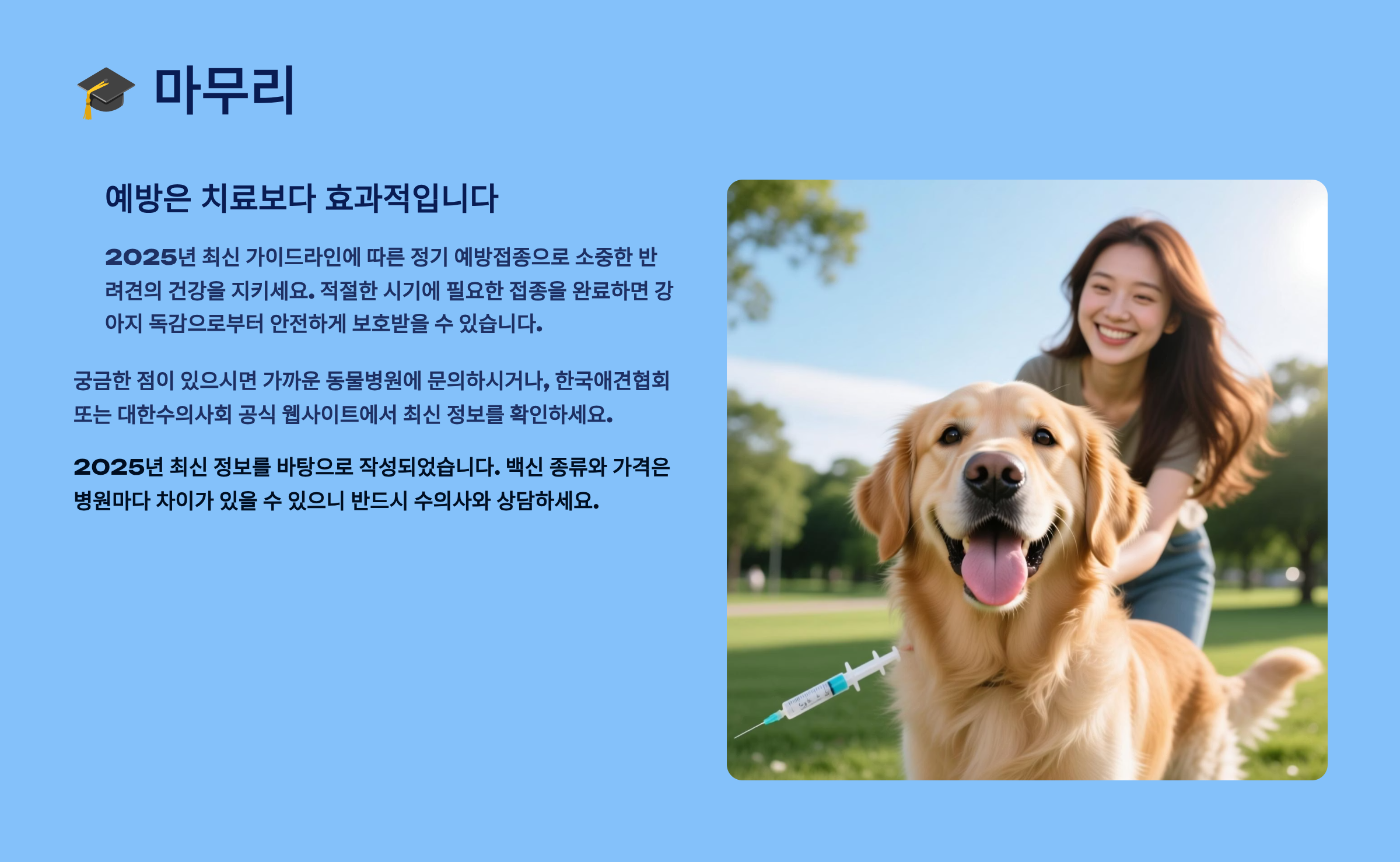 사랑하는 반려견과 오래오래 건강하게 함께하기 위해서는 예방이 최선이에요. 오늘 알려드린 정보를 참고하셔서 우리 아이에게 맞는 예방접종 계획을 세워보세요. 건강한 반려생활을 응원합니다! 🌈✨